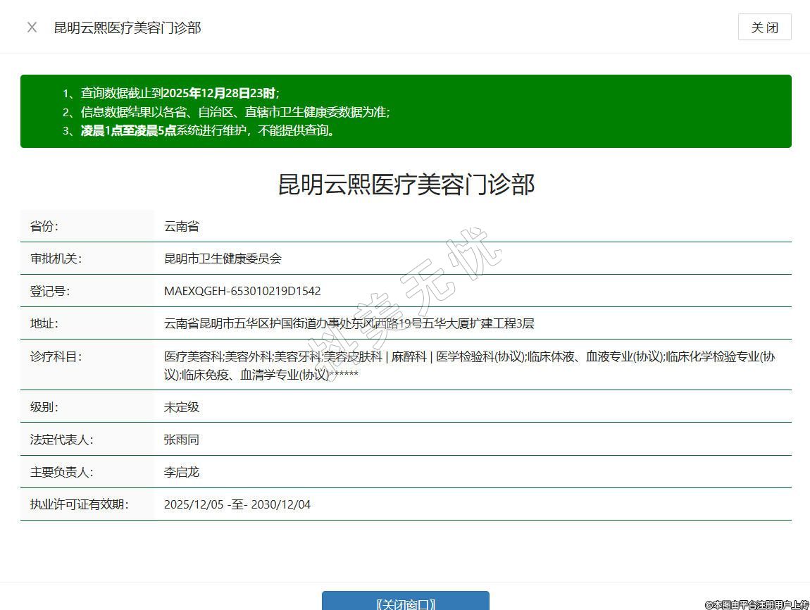 昆明云熙醫(yī)療美容門診部成立于2025年,位于云南省昆明市五華區(qū)護國街道辦事處東風西路19號五華大廈擴建工程3層,是美麗說美容旗下合規(guī)運營的醫(yī)療美容機構,持有相關行政許可,依法開展醫(yī)療美容服務,聚焦合規(guī)醫(yī)療美容項目,經營范圍涵蓋醫(yī)療美容服務、生活美容服務等許可項目,及醫(yī)療器械銷售、健康咨詢服務等配套服務。