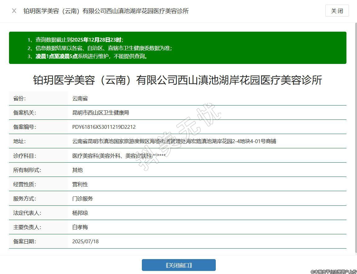 鉑玥醫(yī)學(xué)美容(云南)有限公司西山滇池湖岸花園醫(yī)療美容診所