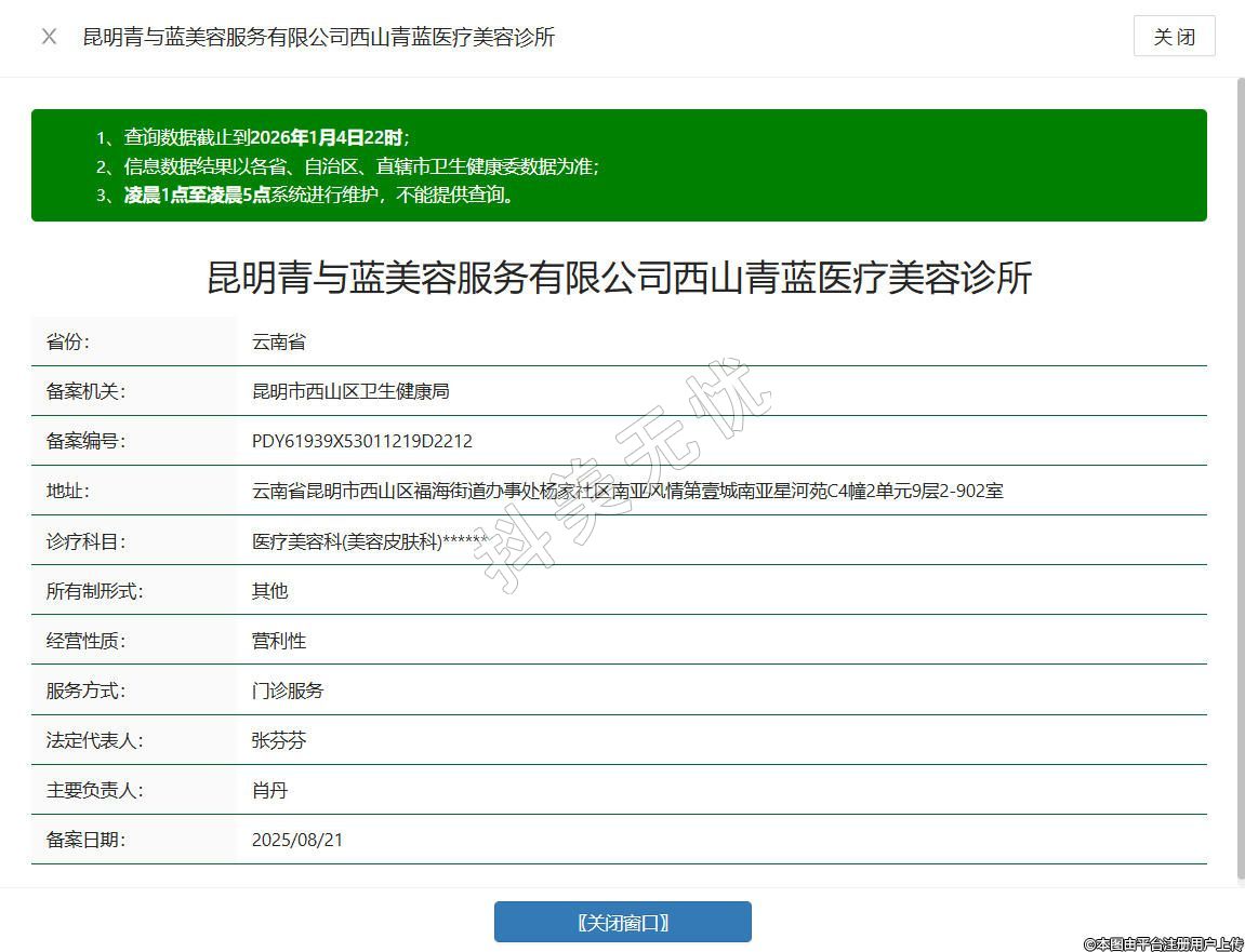 昆明青與藍(lán)美容服務(wù)有限公司西山青藍(lán)醫(yī)療美容診所