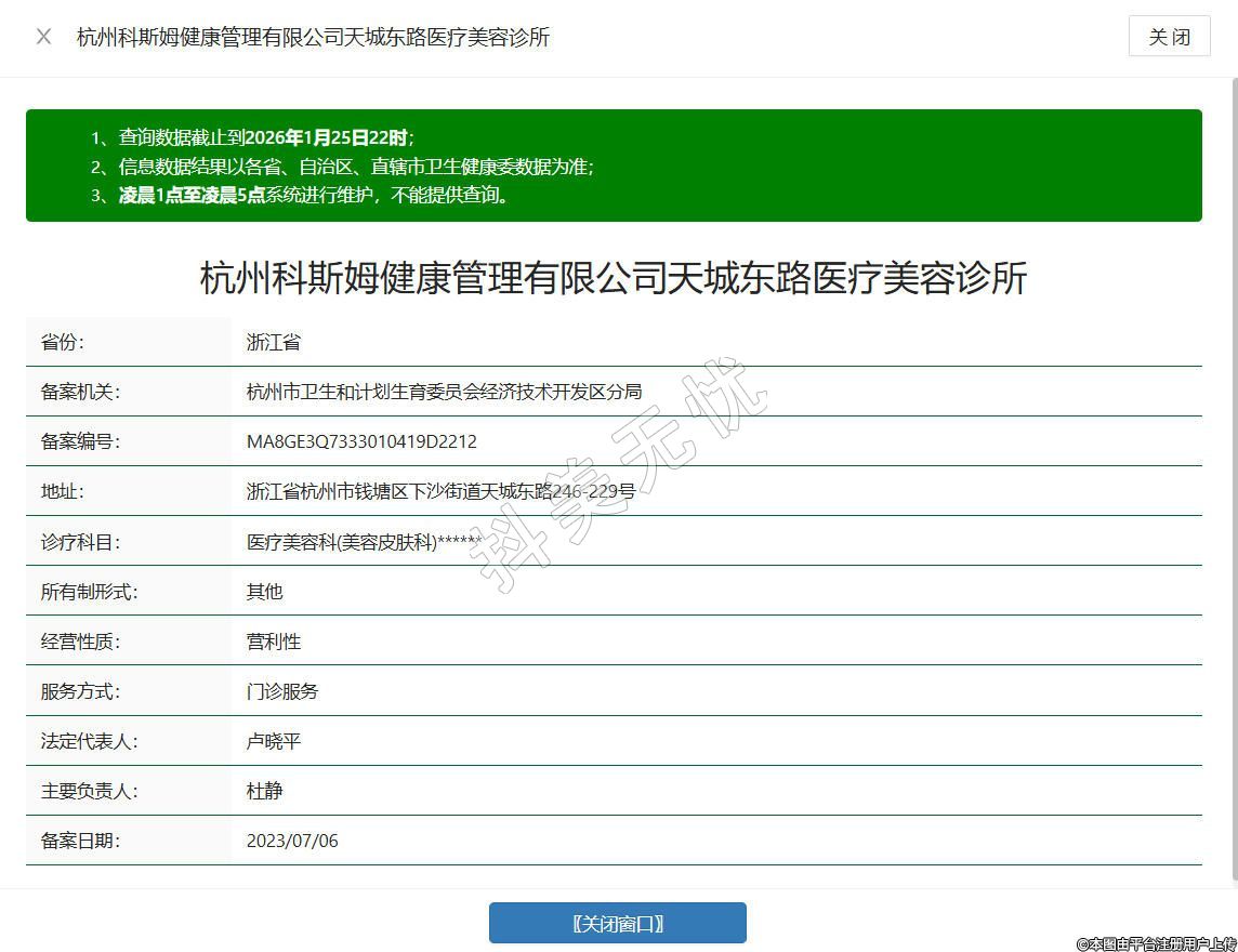 杭州科斯姆健康管理有限公司天城東路醫(yī)療美容診所