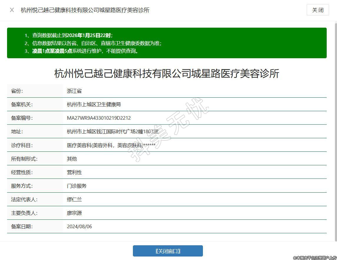 杭州悅己越己健康科技有限公司城星路醫(yī)療美容診所