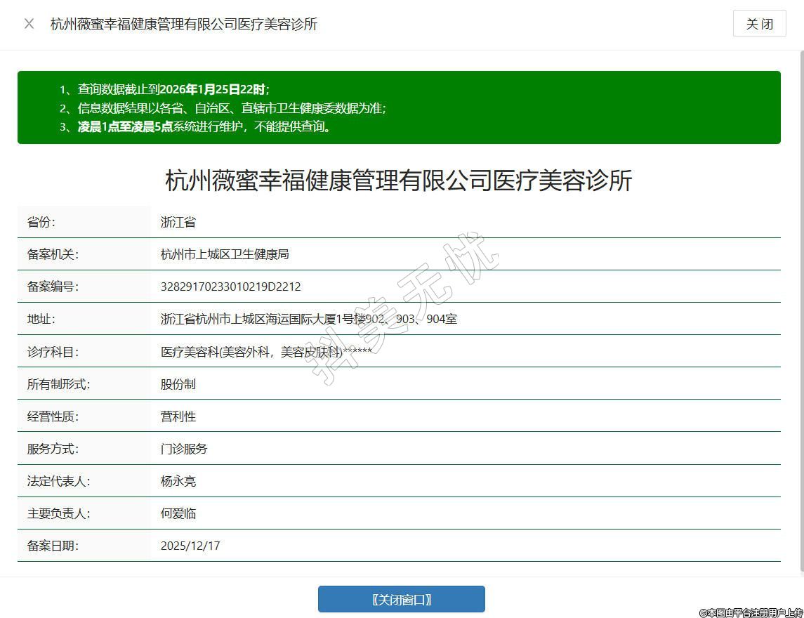 杭州薇蜜幸福健康管理有限公司醫(yī)療美容診所