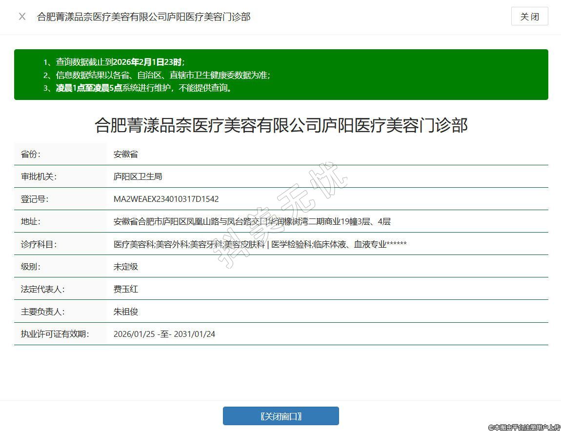 合肥品奈醫(yī)療美容門診部成立于2020年,位于安徽省合肥市廬陽區(qū)鳳凰山路與鳳臺路交口華潤橡樹灣二期商業(yè)19幢3層、4層,是經(jīng)合肥市廬陽區(qū)衛(wèi)健委批準(zhǔn)設(shè)立的正規(guī)醫(yī)療美容機(jī)構(gòu),持有正規(guī)《醫(yī)療機(jī)構(gòu)執(zhí)業(yè)許可證》,開設(shè)美容外科、美容皮膚科、麻醉科、醫(yī)學(xué)檢驗(yàn)科等合規(guī)診療科目,組建了經(jīng)驗(yàn)豐富的醫(yī)師團(tuán)隊,深耕問題性肌膚治療、抗衰抗初老、微整形及整形外科等領(lǐng)域,打造多維度醫(yī)美服務(wù)體系。