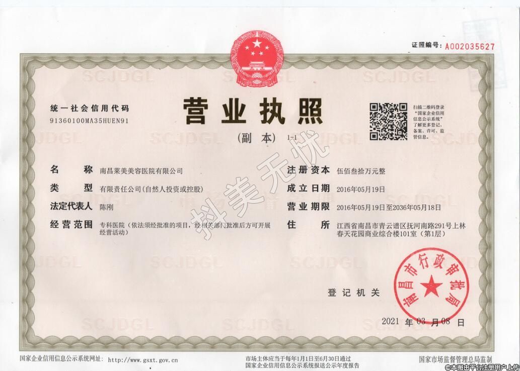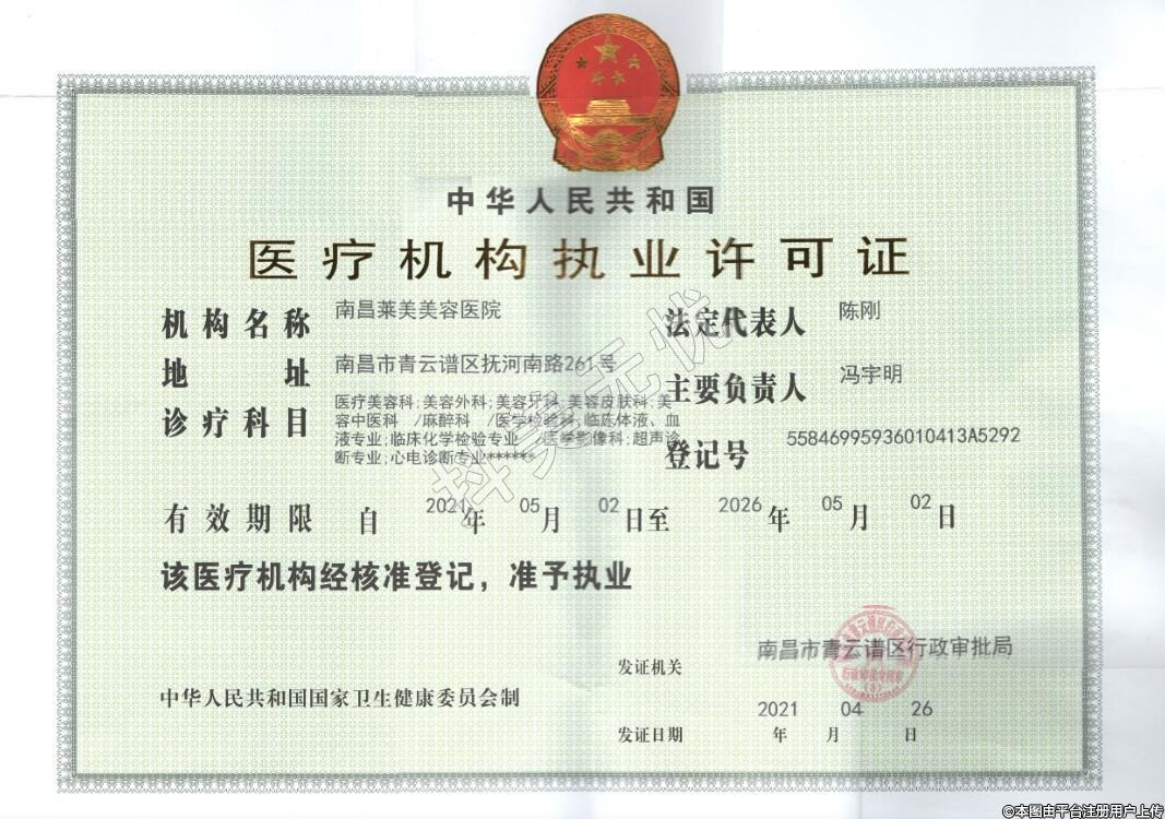 發(fā)證機關:南昌市青云譜區(qū)衛(wèi)生健康委員會