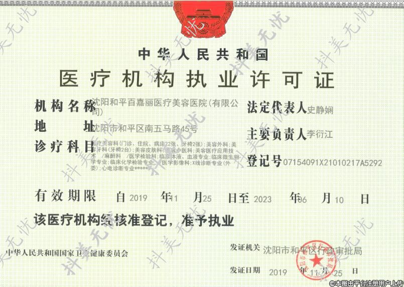 機構(gòu)名稱:沈陽和平百嘉麗醫(yī)療美容醫(yī)院(有限公司)