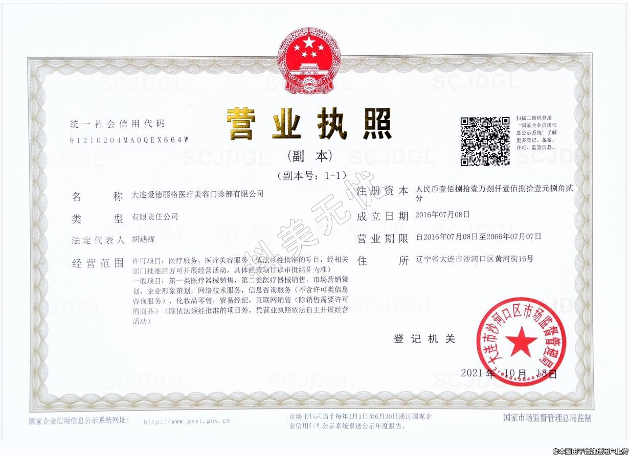 機(jī)構(gòu)名稱:大連愛德麗格醫(yī)療美容門診部有限公司