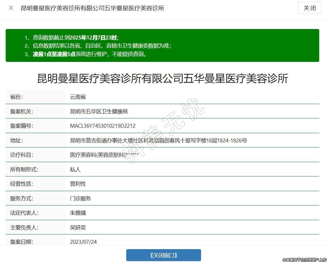 昆明曼星醫(yī)療美容診所有限公司五華曼星醫(yī)療美容診所