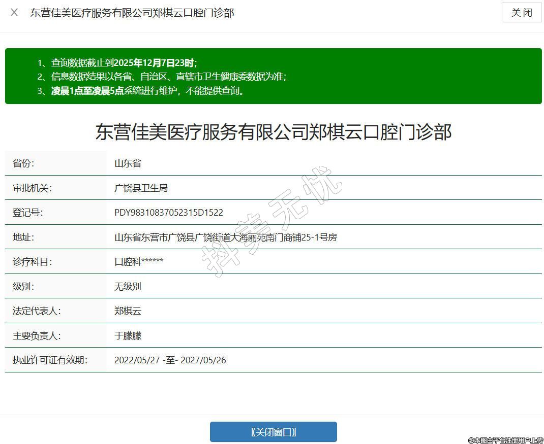東營佳美醫(yī)療服務(wù)有限公司鄭棋云口腔門診部