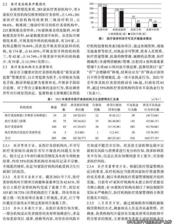 結(jié)果:全市設(shè)有285家醫(yī)療美容機(jī)構(gòu),其中美容醫(yī)院19家、門診部65家、診所160家、內(nèi)設(shè)醫(yī)美科室41家,有超過(guò)一半的醫(yī)療美容機(jī)構(gòu)存在不良執(zhí)業(yè)行為。