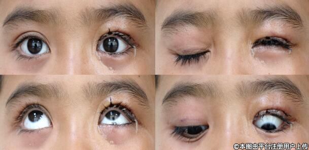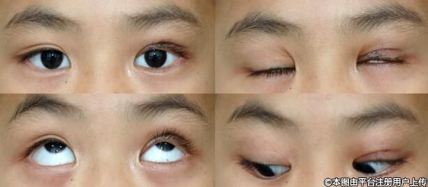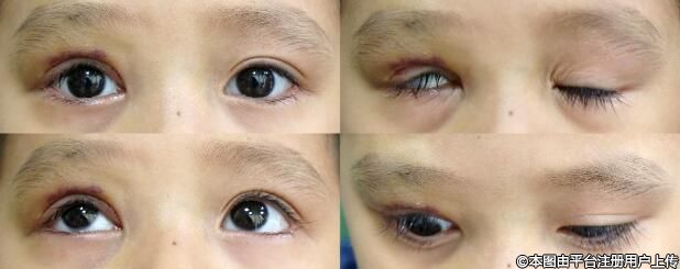 出生后出現(xiàn)單眼或雙眼睜不大,眼睛表現(xiàn)為黑眼珠露出不足,甚至完全不能睜眼,單側(cè)發(fā)病者表現(xiàn)“大小眼”,雙側(cè)下垂常有仰頭、抬眉、皺額的特殊姿勢。先天性上瞼下垂影響外觀,嚴重者可影響視力發(fā)育形成弱視,不利于患兒心理發(fā)育。程度分級:輕度(上瞼遮蓋瞳孔1/3);中度(上瞼遮蓋瞳孔1/2);重度(上瞼遮蓋瞳孔2/3)。