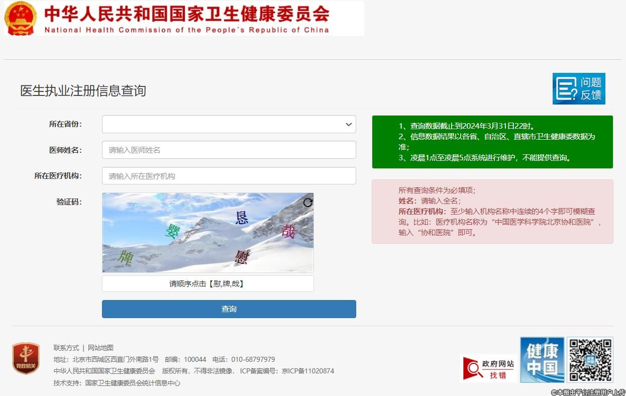 【快捷方法】點(diǎn)擊網(wǎng)址進(jìn)入國(guó)家衛(wèi)健委官網(wǎng)(醫(yī)生執(zhí)業(yè)注冊(cè)信息查詢):http://zgcx.nhc.gov.cn:9090/Doctor