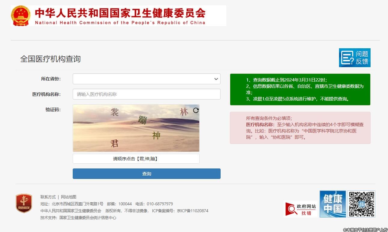 【快捷方法】點(diǎn)擊網(wǎng)址進(jìn)入國(guó)家衛(wèi)健委官網(wǎng)(全國(guó)醫(yī)療機(jī)構(gòu)查詢):http://zgcx.nhc.gov.cn:9090/unit/index