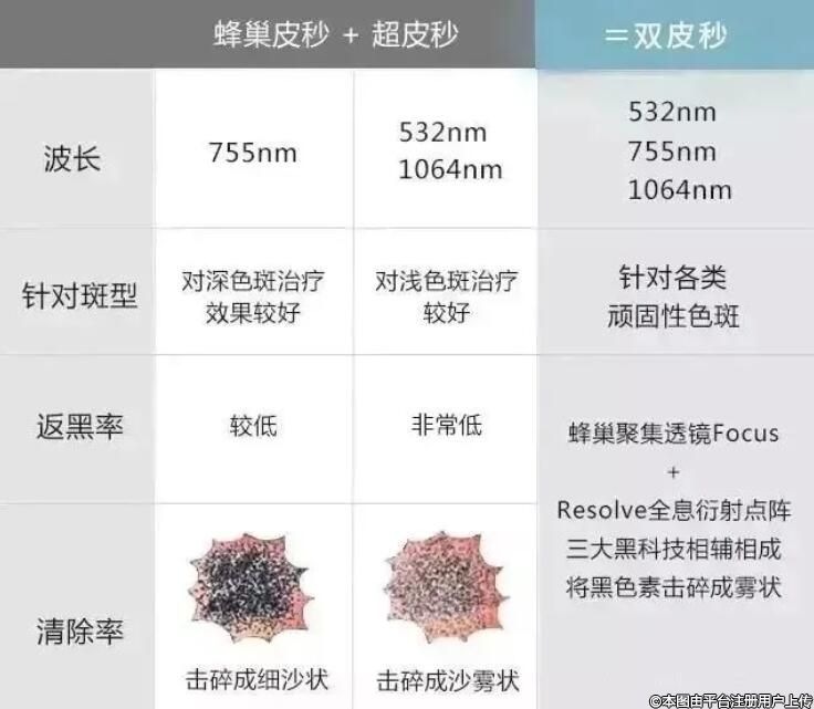 蜂巢皮秒和超皮秒兩個機(jī)器的功能都是非常強(qiáng)大的,可以說是目前治療色素性疾病的首選,每臺皮秒機(jī)器的不同波長有不同優(yōu)點,不同波長結(jié)合起來可集合起來所有的優(yōu)點。