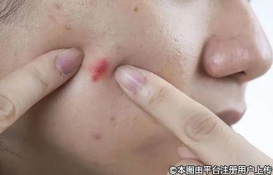 炎性丘疹,呈淡紅色,通常表現(xiàn)為高出皮膚的局部性凸起,頂部冒白尖。