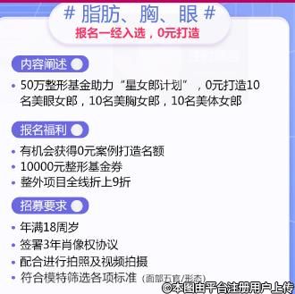 我是星女郎,柳州華美案例招募活動正在進(jìn)行中,報(bào)名一經(jīng)入選,即可享受0元打造的脂肪、胸、眼等美容整形,報(bào)名還有福利拿,愛美者趕緊來吧!