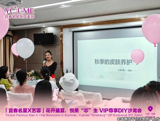 隨后,藝霏品牌方——胡莉老師上臺為我們分享《秋季的皮膚養(yǎng)護(hù)》。她還表示:“在忙碌的生活中,運(yùn)動、冥想、閱讀、感恩,確實(shí)是我們自我療愈很好的方法。除此之外呢,美膚也是一種提升幸福感的方式。作為深耕皮膚領(lǐng)域十多年的民族品牌,藝霏一直專注于肌膚健康美學(xué)研究,不斷夯實(shí)抗氧化地位。相信宜春名星與藝霏的強(qiáng)強(qiáng)攜手,能更好改善臨床中遇到的【敏炎斑衰】等皮膚問題,提升顧客的皮膚美容滿意度。”