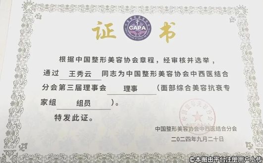 喜報(bào)|恭賀太原射頻抗衰專(zhuān)家王秀云被聘為中國(guó)整形美容協(xié)會(huì)中西醫(yī)結(jié)合分會(huì)理事會(huì)理事