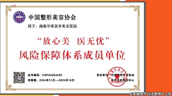2024年11月,海南華美醫(yī)學美容醫(yī)院被中國整形美容協(xié)會授予的“放心美醫(yī)無憂”風險保障體系成員單位,同時是海南首家得到的殊榮!海南華美在品質(zhì)醫(yī)美領域邁出了堅實的一步!