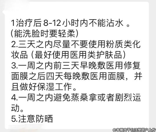 這期間工作人員會給出做完醫(yī)美之后的保養(yǎng)建議,我對什么是械字號發(fā)出了疑問,工作人員又給解釋了下。出來后工作人員不放心,又告訴我一遍,最后還在項目全都結束用文字的方式再囑咐一遍,很負責。