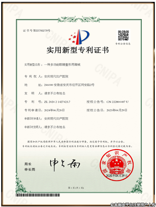 近日,安慶現(xiàn)代婦產(chǎn)醫(yī)院醫(yī)學(xué)美容科9°生態(tài)美眼技術(shù)獲得國家專利認(rèn)證,為本地眼部整形領(lǐng)域帶來新突破,為愛美人士提供了更安全、更自然的雙眼皮整形選擇。