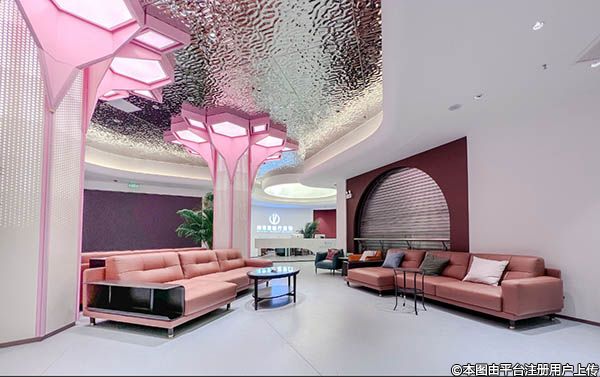 剛走進(jìn)大廳,仿佛跌進(jìn)了粉色童話世界,馬卡龍粉的主色調(diào)鋪滿整個(gè)空間,大氣又不失精致的空間設(shè)計(jì)瞬間抓住眼球。