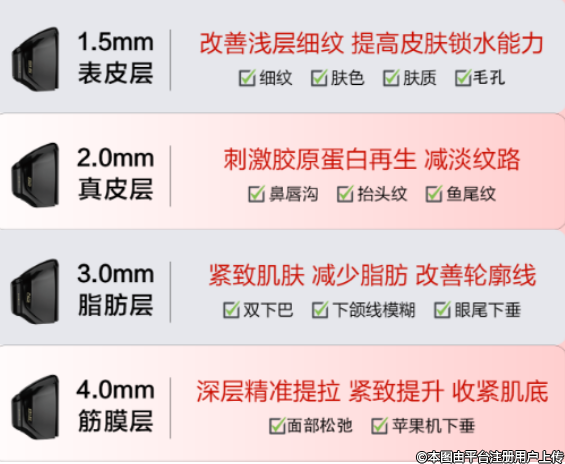 相比一年需做2-3次的超聲炮,美拉美歐版超聲刀全臉提升更精準(zhǔn)(覆蓋多個(gè)層次)。