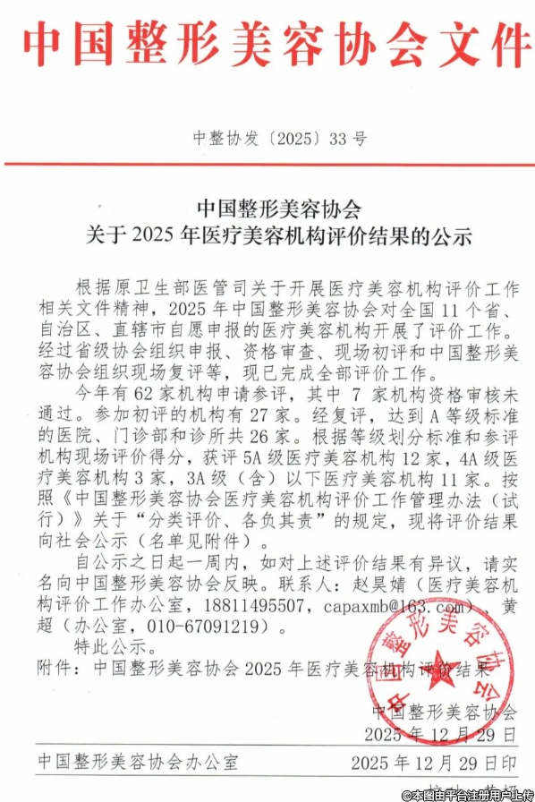 2025年醫(yī)療美容機(jī)構(gòu)評(píng)價(jià)結(jié)果的公示
