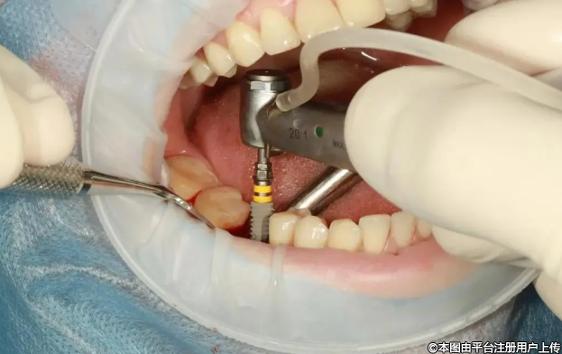露出種植體,放置愈合基臺(該步驟常合并于一期手術(shù))。